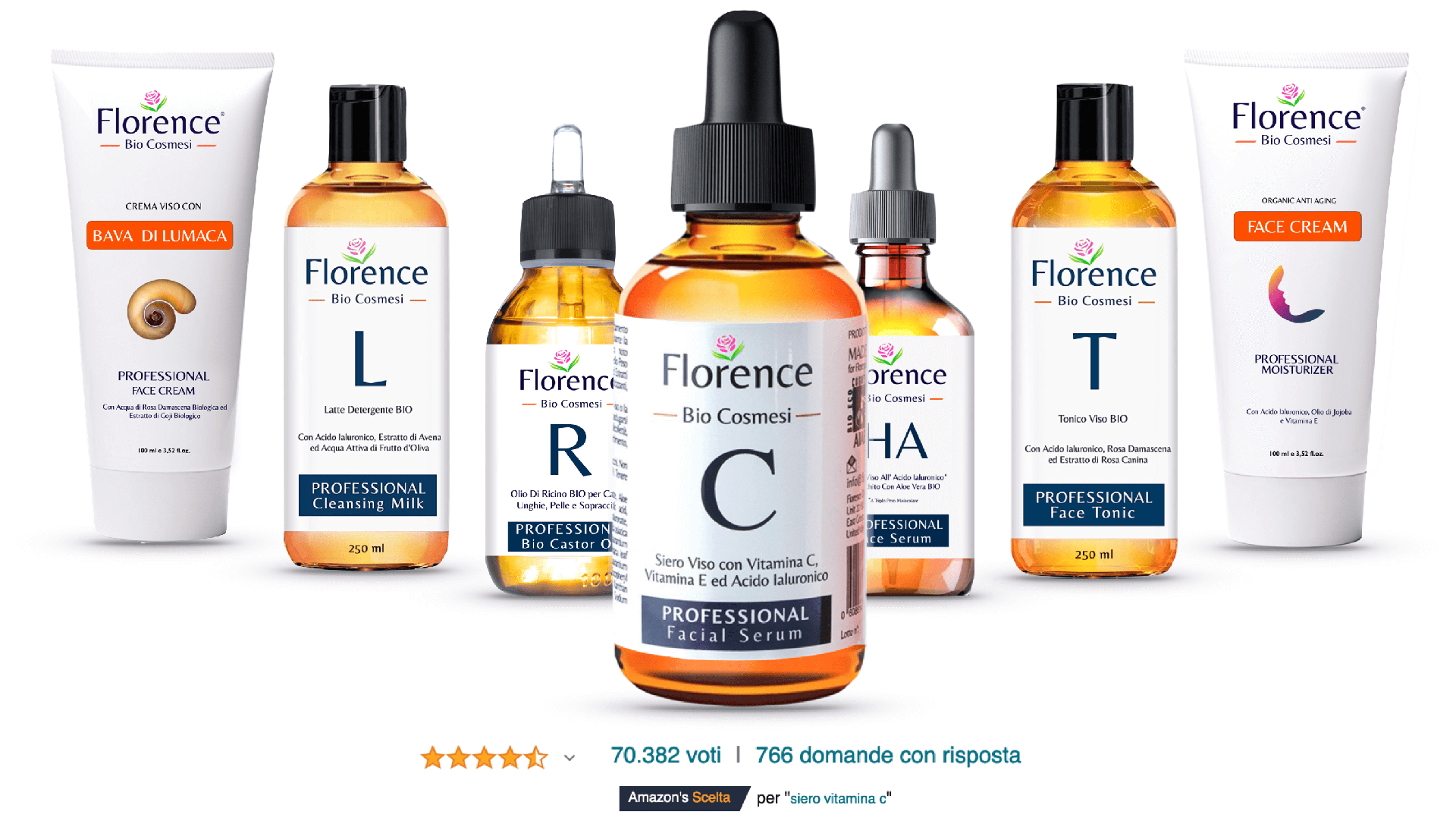 Florence Organics produce cosmetici di altissima qualità, made in Italy e venduti in tutto il mondo. Benvenuti nel mondo Florence Organics, una skincare che offre qualità, valore e risultati straordinari, con formulazioni BIO, senza additivi inutili o test sugli animali, le nostre formulazioni sono realizzate con ingredienti di qualità superiore per fornire prodotti incredibilmente efficaci per tutti i tipi di pelle, ed a prezzi accessibili a tutti.